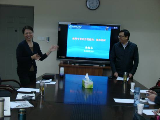 10月21号上午,首师大基础教育发展研究院“北京市中小学特级教师研修室”项目邀请到了北京师范大学教育学部副部长,博士生导师朱旭东教授,为“北京市中小学特级教师研修室”的特级教师进行题为“教师专业的自我建构:概念机制”的专题讲座。出席本次讲座的有特级教师成员、首师大研究生和博士生,本次会议由首都师范大学365手机版张景斌教授主持。