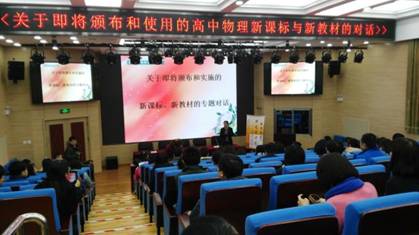 3月4日上午,教育部首都师大课程中心物理教育研之究沙龙在我市东城区教师研修中心会议室以“即将颁布和实施的新课标、新教材”为题,进行了专题对话。本次活动特别邀请到新一轮高中物理课程标准修订组成员、北京师范大学物理系郭玉英教授和人民教育出版社物理教材主编彭前程编审担任对话嘉宾。我校北京市特级教师研修工作室项目与名师发展工程项目物理学科指导教师续佩君、郑鹉、卢慕稚等,我校特级教师研修工作室项目和名师发展工程项目的学员,以及来自全市各区中学的物理教师近百人参与了对话活动。